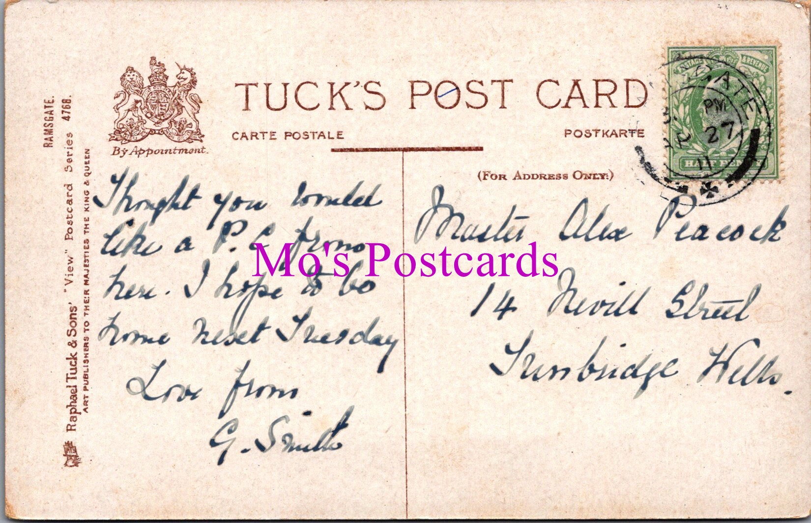 The 'Mo's Postcards' watermark does not appear on the actual postcard'.