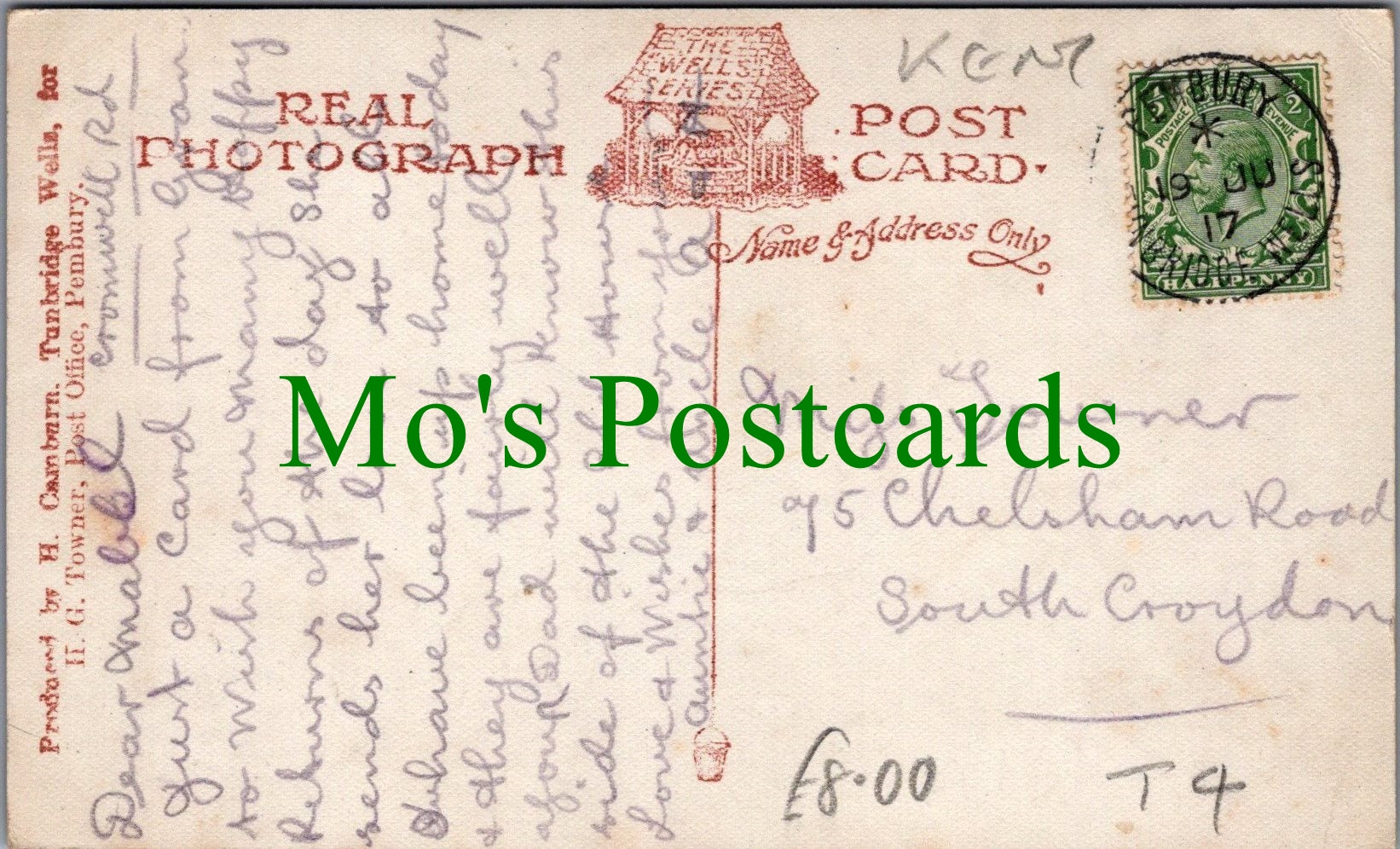 All of our postcards are posted to you inside a plastic sleeve and a board backed envelope which will be marked 'Please do not bend'. The 'Mo's Postcards' watermark does not appear on the actual postcard'.