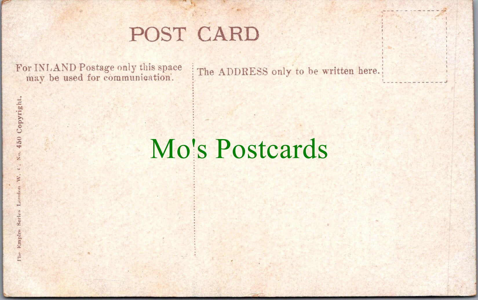 All of our postcards are posted to you inside a plastic sleeve and a board backed envelope which will be marked 'Please do not bend'. The 'Mo's Postcards' watermark does not appear on the actual postcard'.