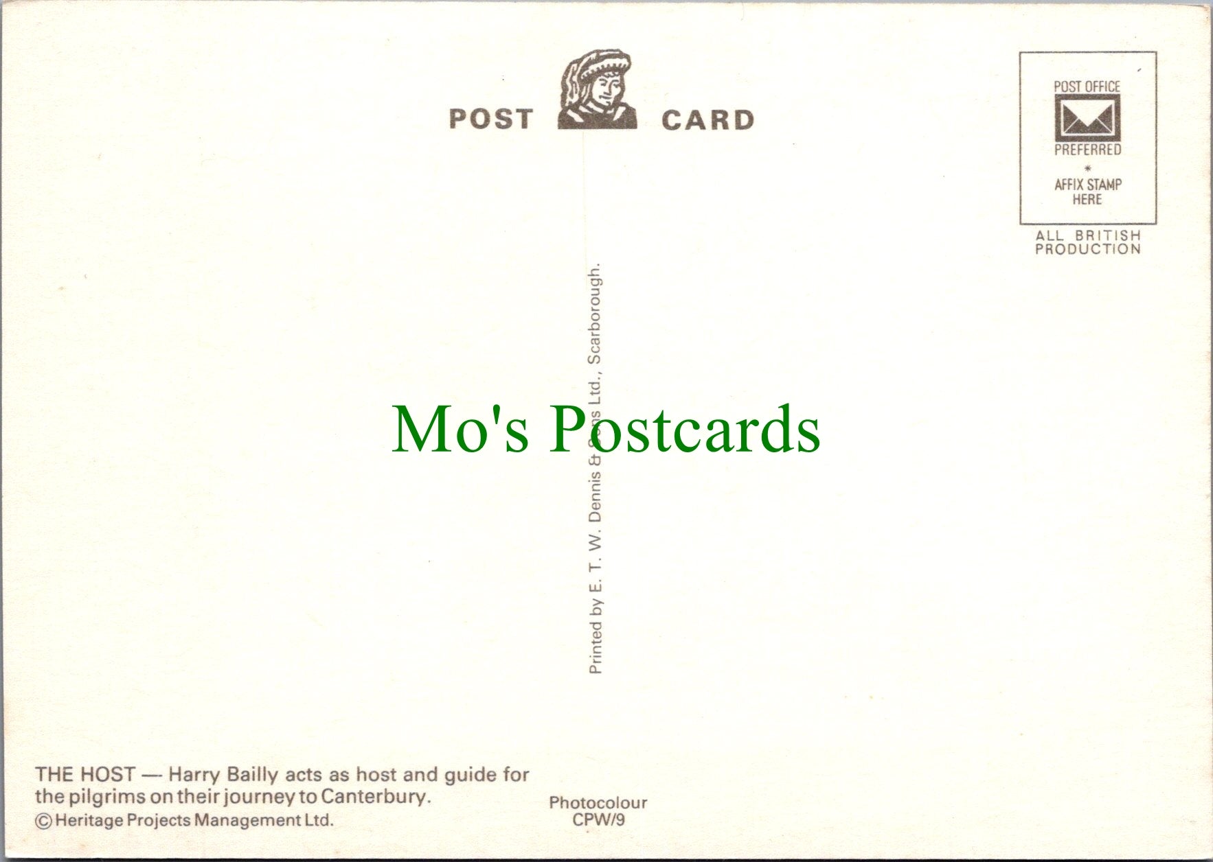 All of our postcards are posted to you inside a plastic sleeve and a board backed envelope which will be marked 'Please do not bend'. The 'Mo's Postcards' watermark does not appear on the actual postcard'.