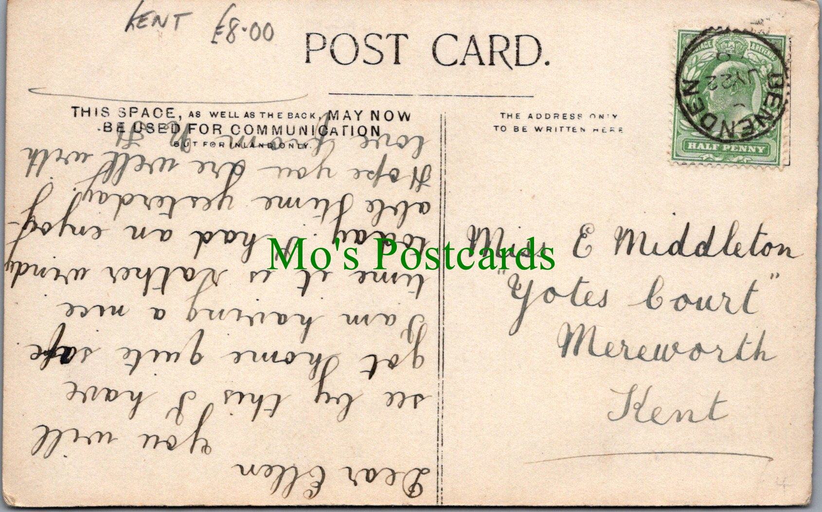 All of our postcards are posted to you inside a plastic sleeve and a board backed envelope which will be marked 'Please do not bend'. The 'Mo's Postcards' watermark does not appear on the actual postcard'.