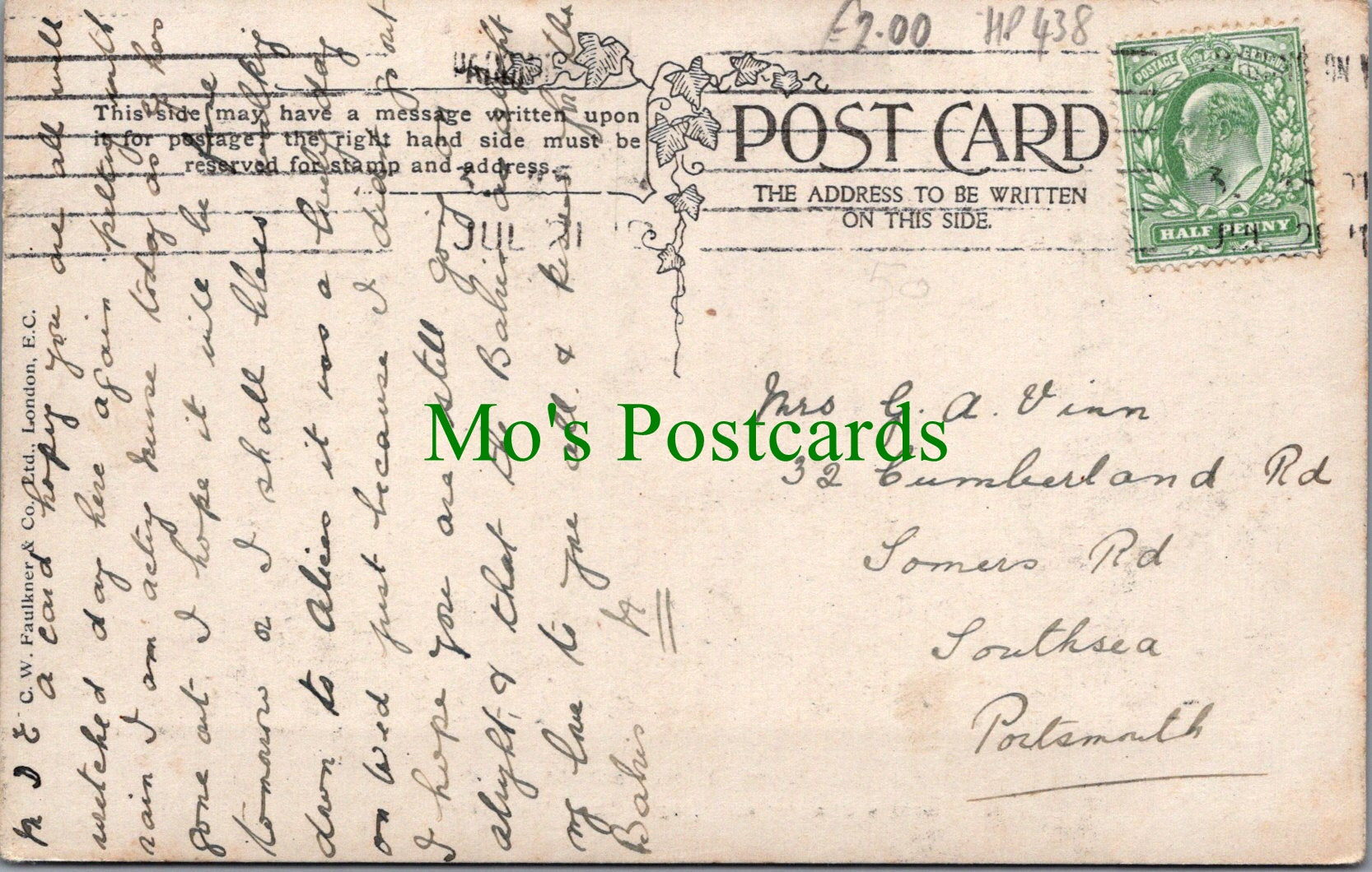 The 'Mo's Postcards' watermark does not appear on the actual postcard'.
