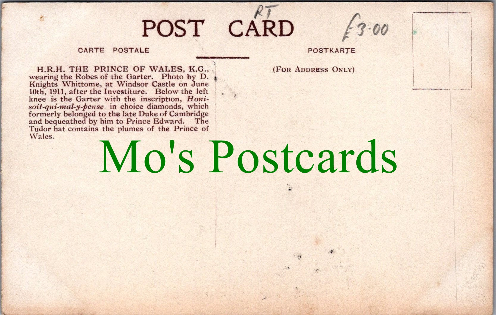 This is a postcard of H.R.H.The Prince of Wales, K.G