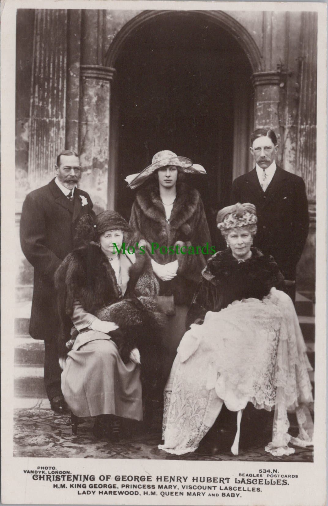 Mo's Postcards offers for sale a postcard of Christening of George Henry Hubert Lascelles.