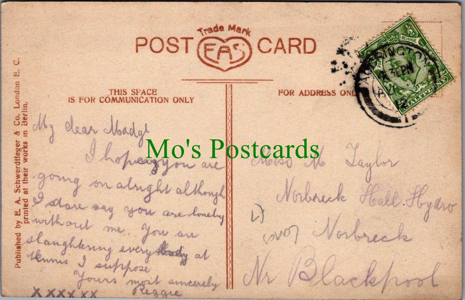All of our postcards are posted to you inside a plastic sleeve and a board backed envelope which will be marked 'Please do not bend'. The 'Mo's Postcards' watermark does not appear on the actual postcard'.
