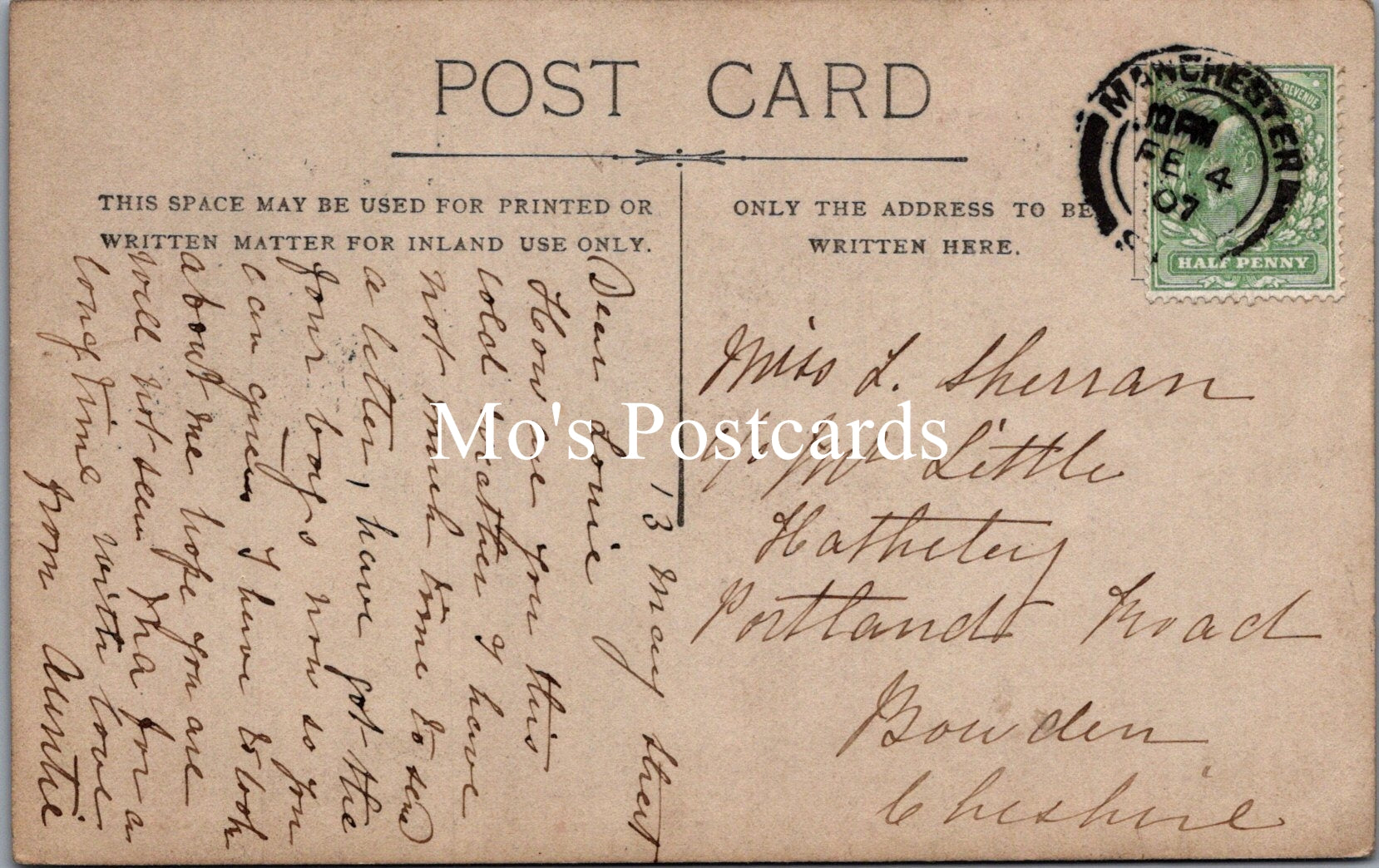 Postcard size: Standard. Posted in 1907 from Manchester