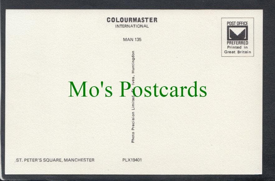 Mo's Postcards offers for sale a postcard showing St Peter's Square, Manchester, Lancashire.