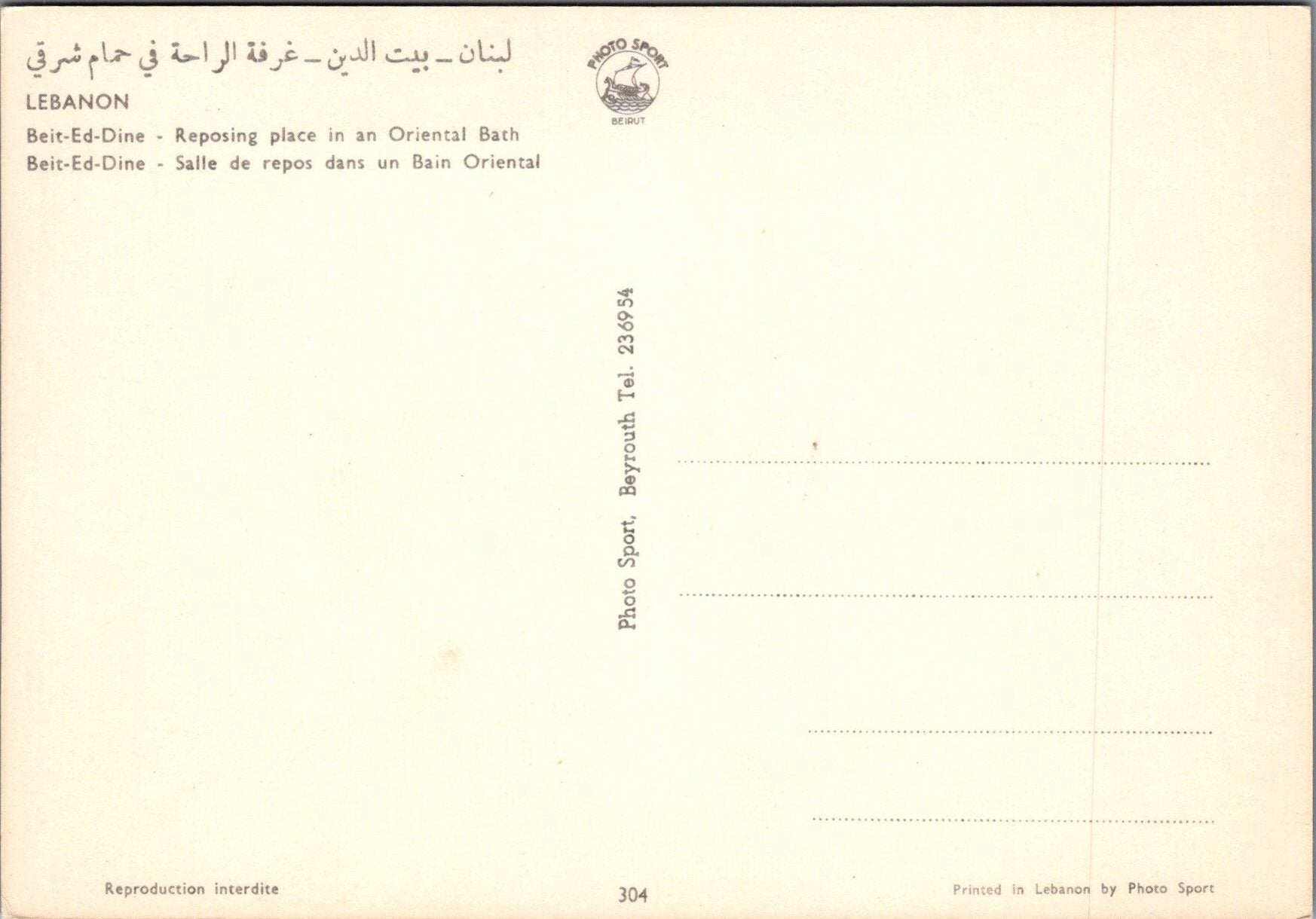 Reposing Place in an Oriental Bath, Beit-Ed-Dine, Lebanon. This is a fantastic continental sized postcard which would be a great addition to your postcard collection.