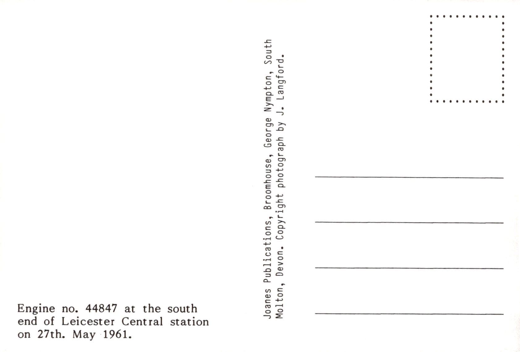 Leicestershire Postcard - Engine No 44847 at The South End of Leicester Central SW2484