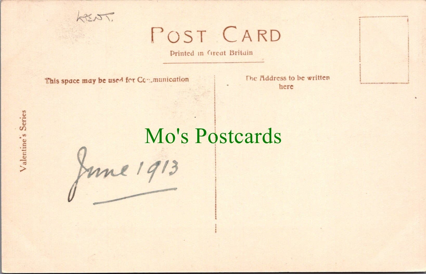 Standard size postcard. Published by Valentine. Dated 1913.