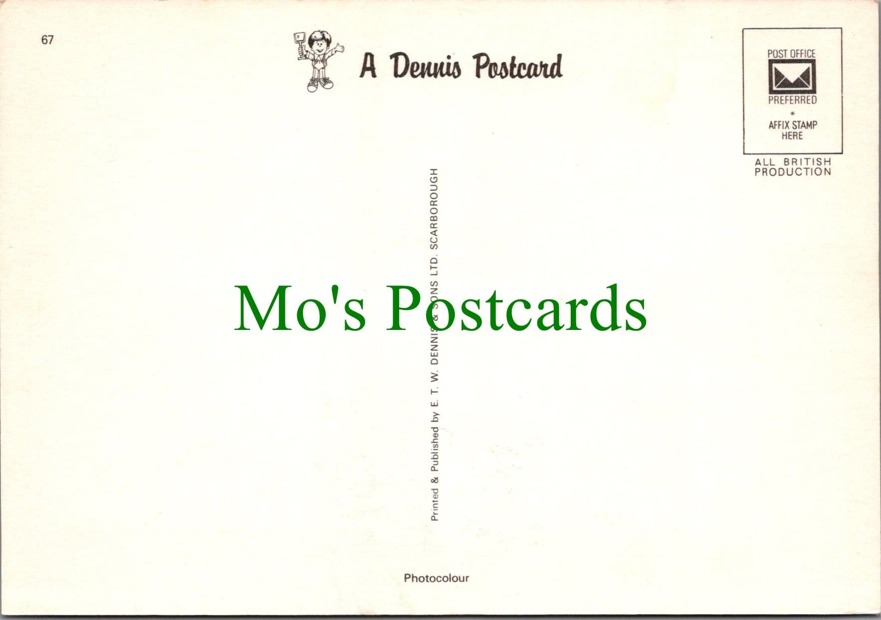 Continental size postcard. Published by E.T.W.Dennis & Sons.