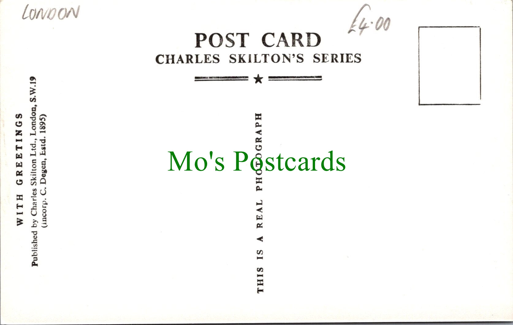 All of our beautiful postcards are posted to you inside a plastic sleeve and a board backed envelope which will be marked 'Please do not bend'. The 'Mo's Postcards' watermark does not appear on the actual postcard'.
