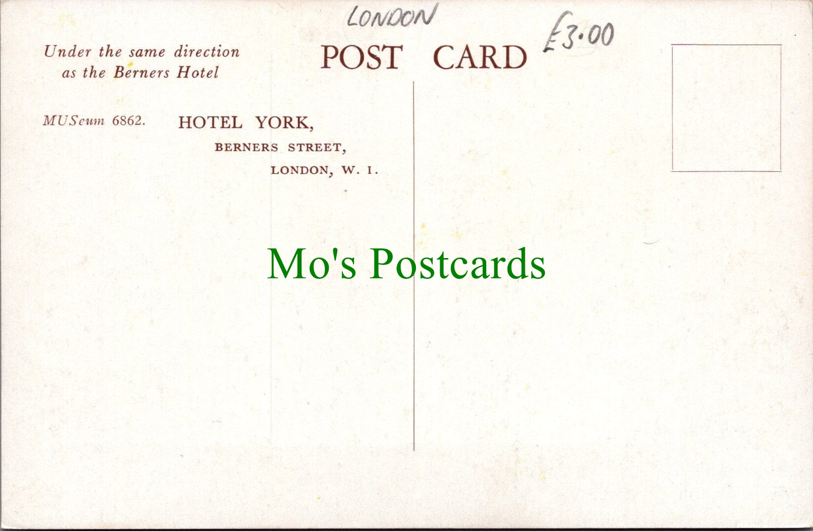 Hotel York, Berners Street, London. This is a fantastic standard sized postcard which would be a great addition to your postcard collection. From Fan unknown publisher.