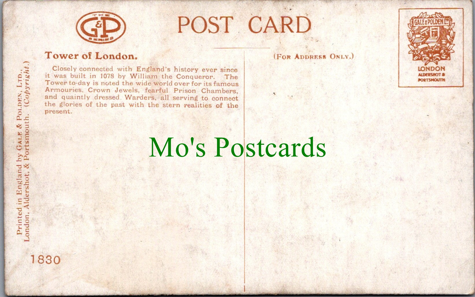 The 'Mo's Postcards' watermark does not appear on the actual postcard'.