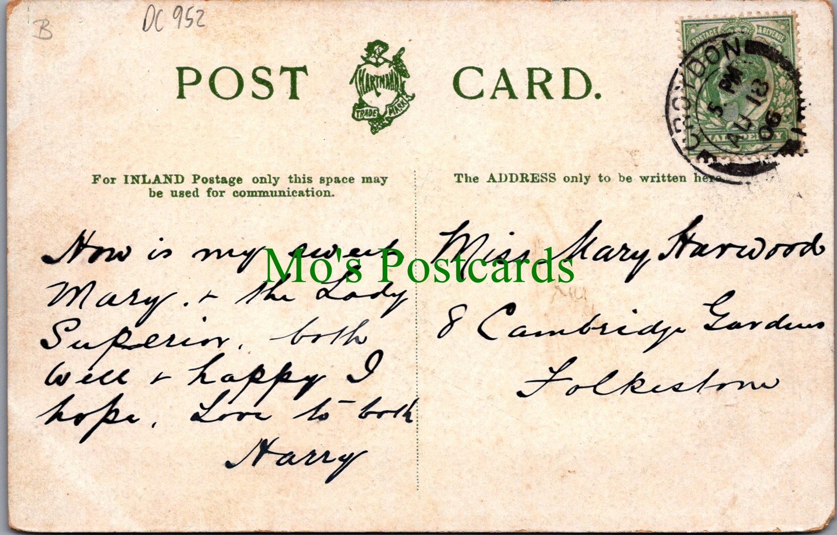 The 'Mo's Postcards' watermark does not appear on the actual postcard'.