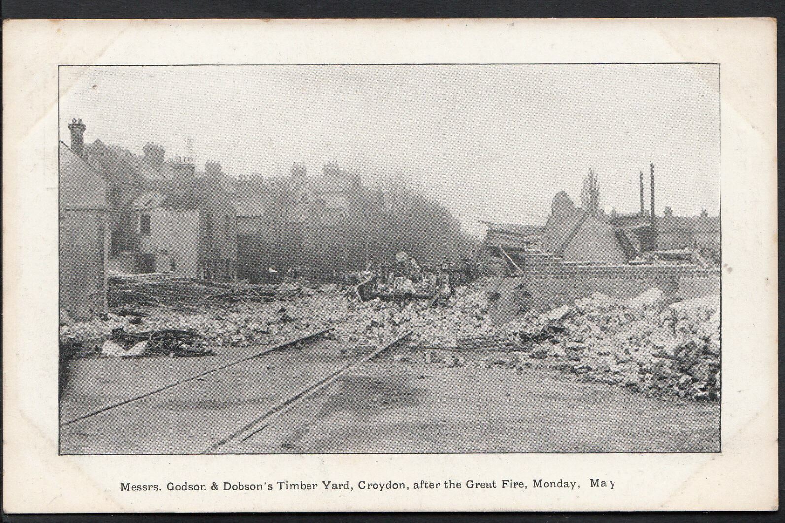 Mo's Ref:  London Postcard - Godson & Dobson's Timberyard Fire Croydon 1905 - B599