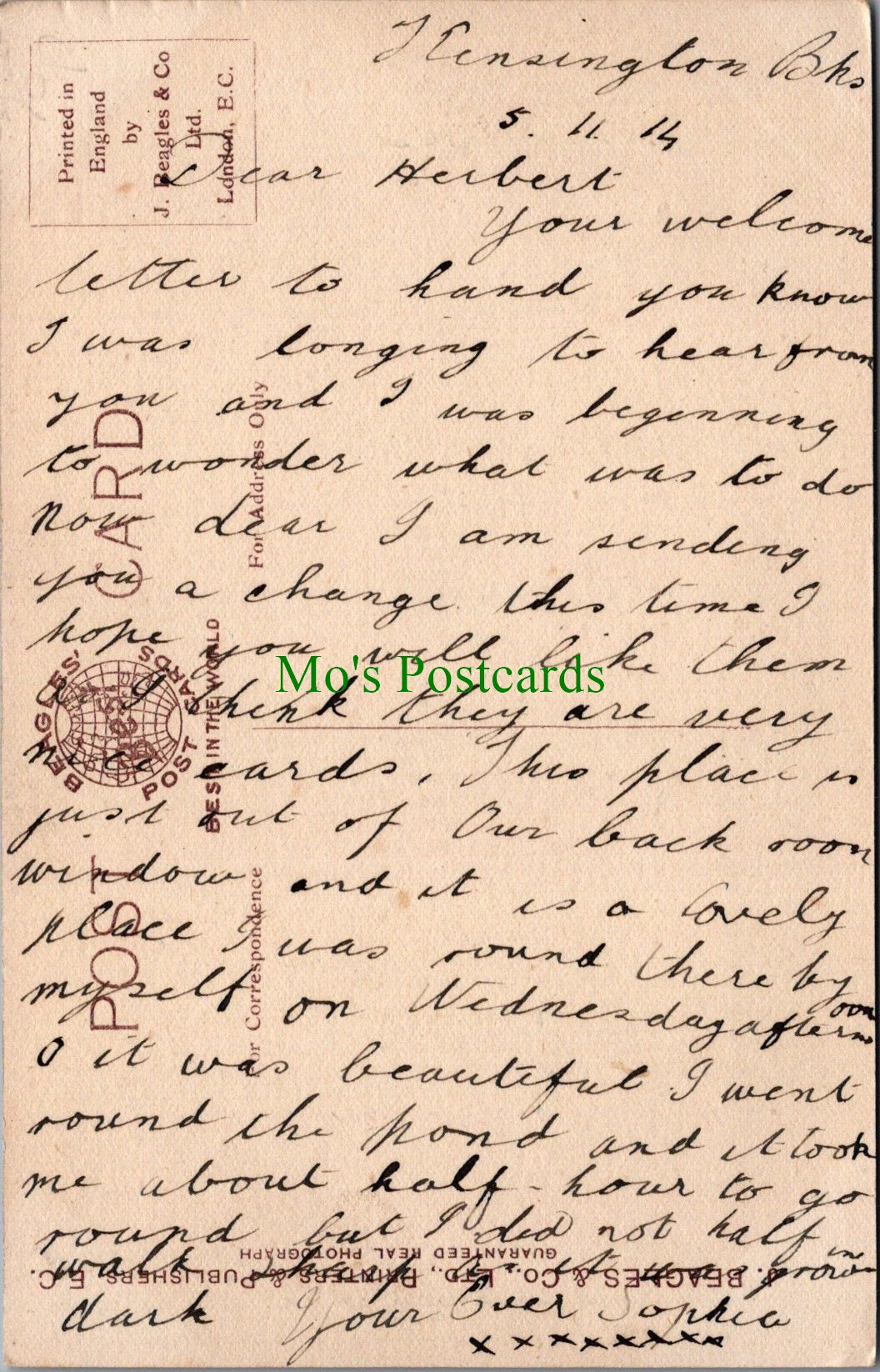 The 'Mo's Postcards' watermark does not appear on the actual postcard'.