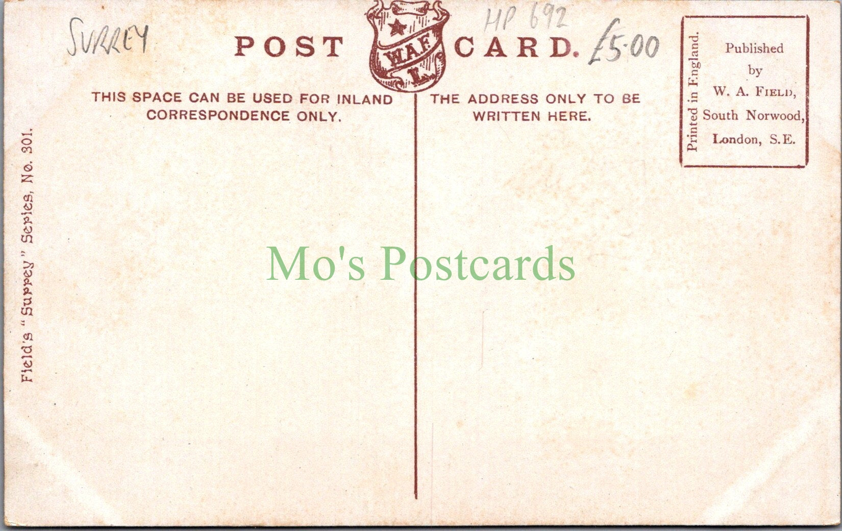 Publisher: Field's "Surrey" Series. No.301