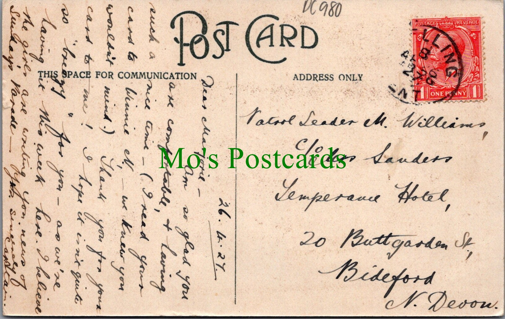 The 'Mo's Postcards' watermark does not appear on the actual postcard'.