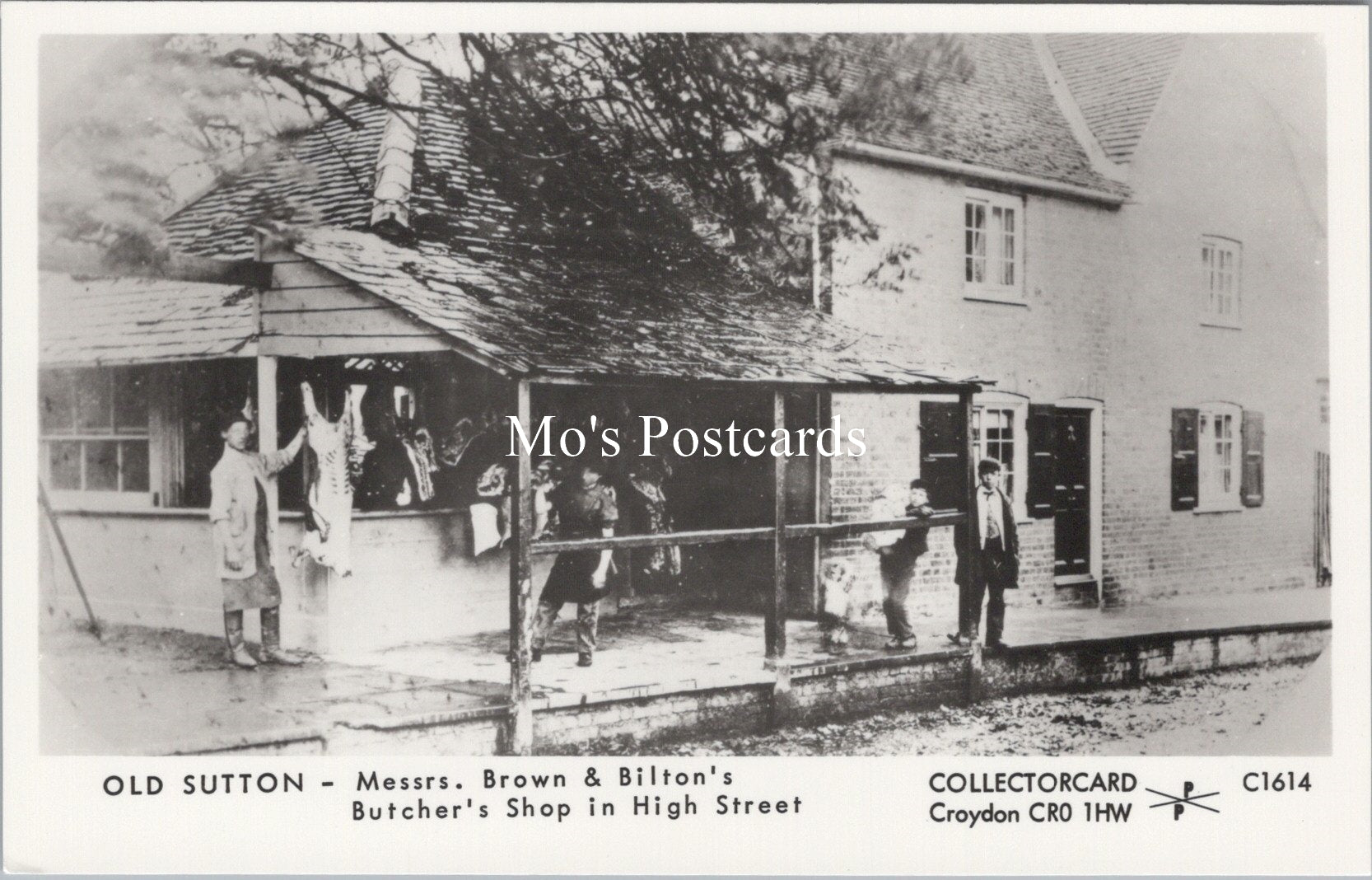 This is a London Postcard - Old Sutton, Messrs Brown and Bilton's Butcher's Shop in High Street SW17546