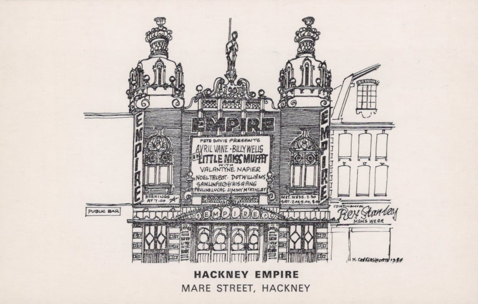London Postcard - Pencil Drawing of Hackney Empire, Mare Street, Hackney - Artist Nick Charlesworth