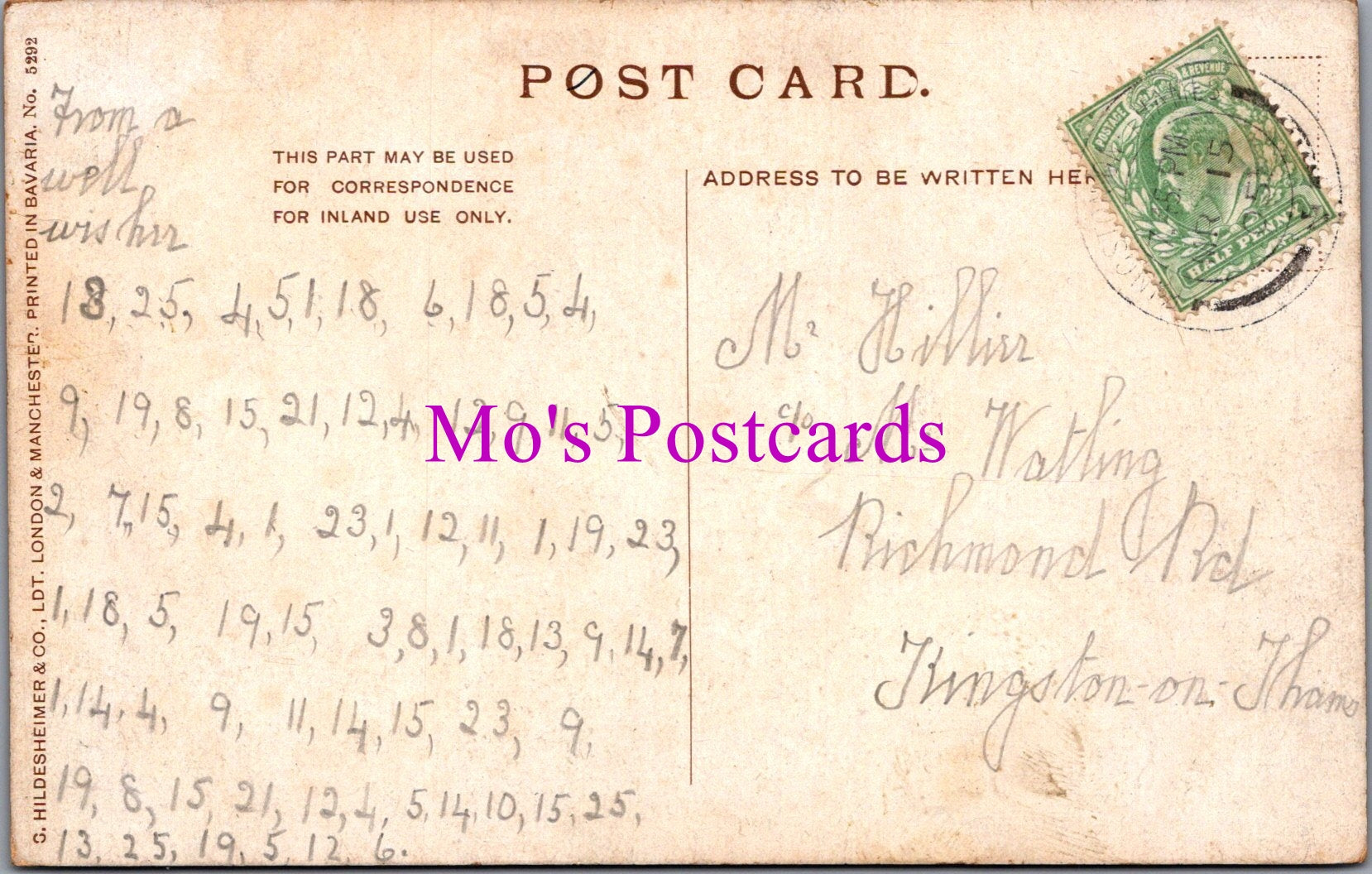 The 'Mo's Postcards' watermark does not appear on the actual postcard'.