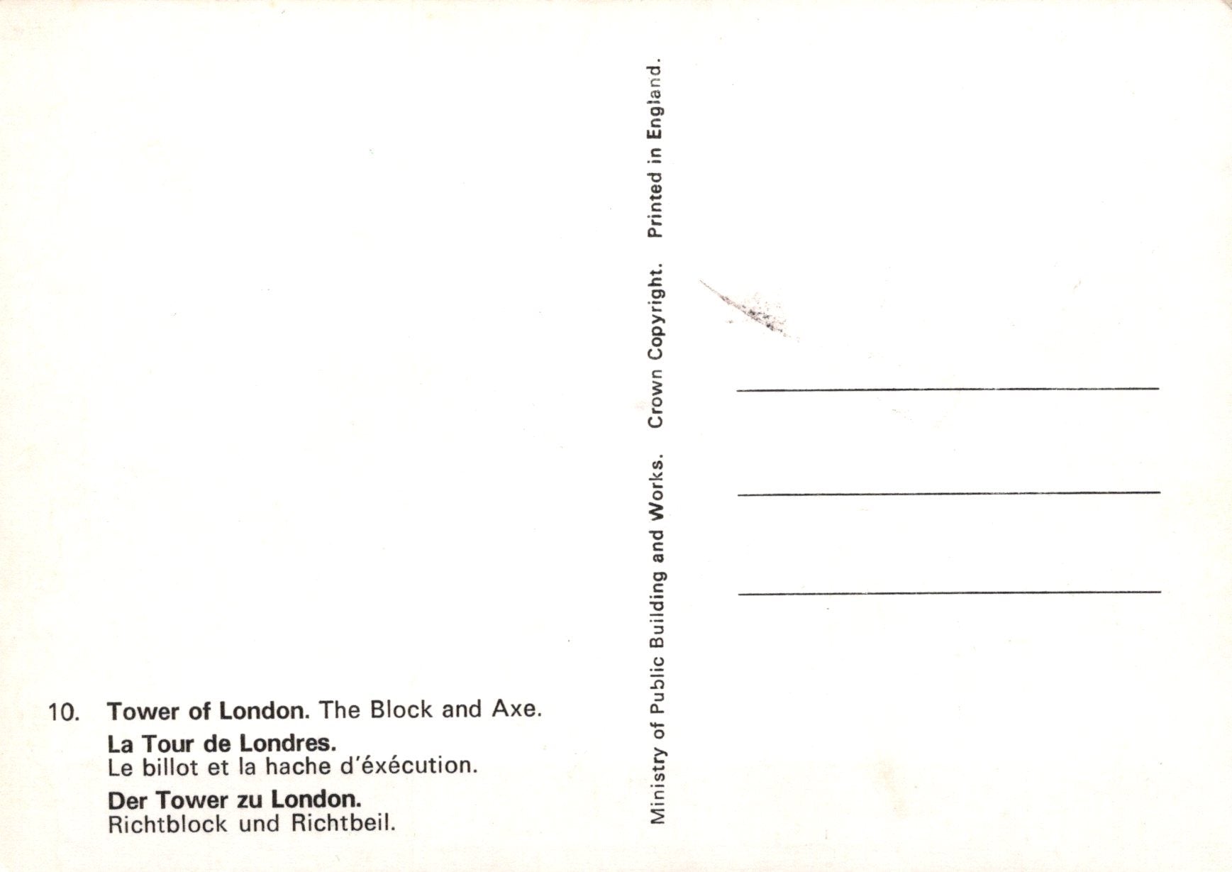 Mo's Ref: London Postcard - Tower of London, The Block and Axe VT168