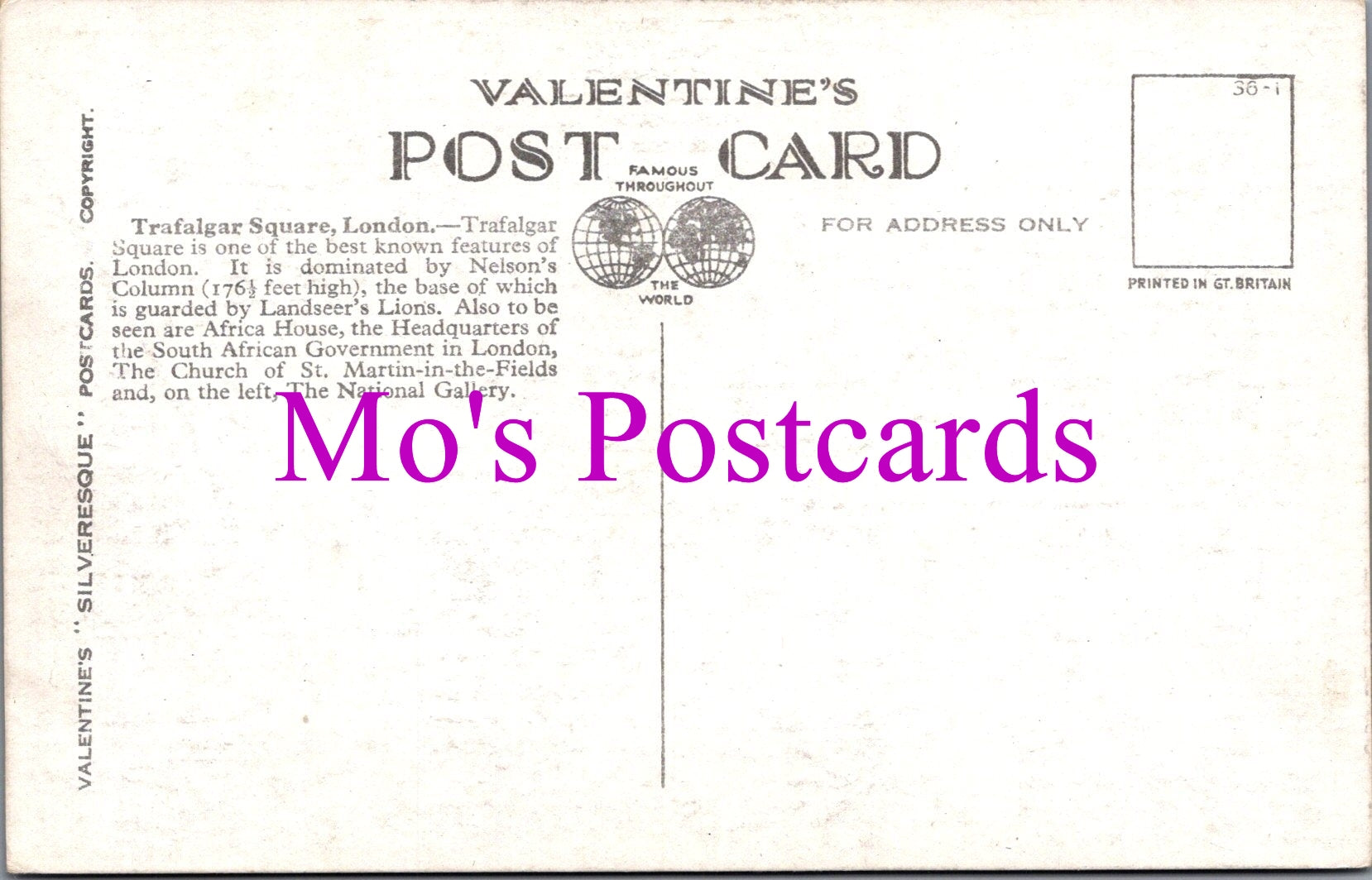 This is a London Postcard - Trafalgar Square   SW14524