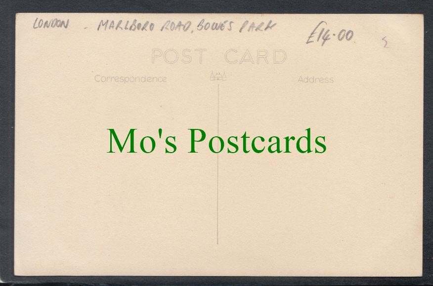 Mo's Postcards offers for sale a postcard of Marlboro Road, Bowe's Park, London.