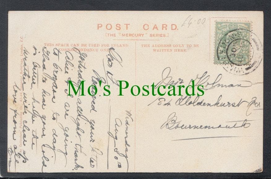 Standard size postcard. Published by The Collectors' Publishing Co. Very slight surface wear, and a small tear at the left hand edge.