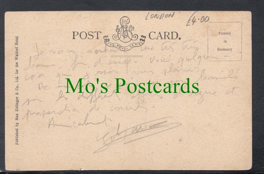 Standard size postcard. Published by Max Ettlinger & Co Ltd. Small crease to the top right hand corner.