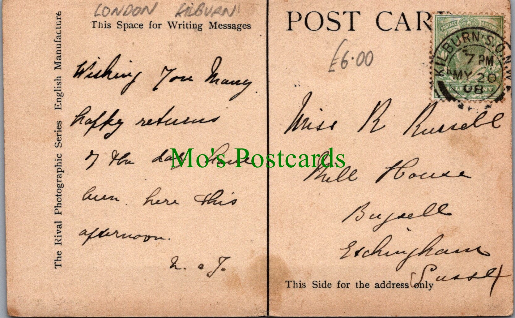 Views of Kilburn, London. This is a fantastic standard sized postcard which would be a great addition to your postcard collection. From The Rival Photographic Series. Posted in 1908.