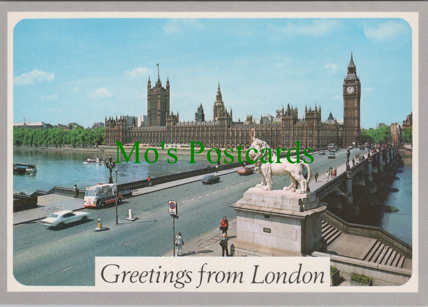 Mo's Postcards offers for sale a postcard of Westminster Bridge, London.