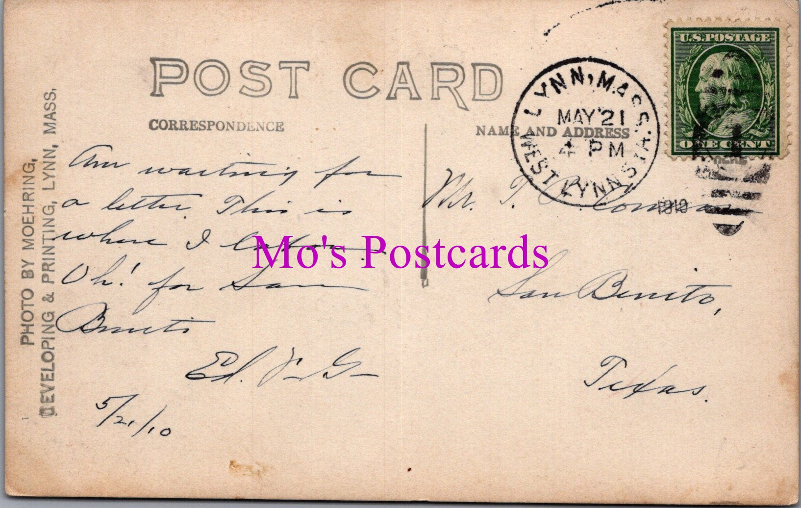 The 'Mo's Postcards' watermark does not appear on the actual postcard'.