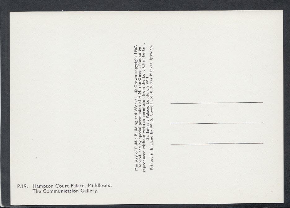 Mo's Postcards offers for sale postcard of Hampton Court Palace, Middlesex. The Communication Gallery.