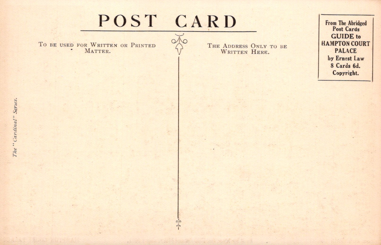 Historical black and white postcard of Hampton Court Palace's Fountain Court