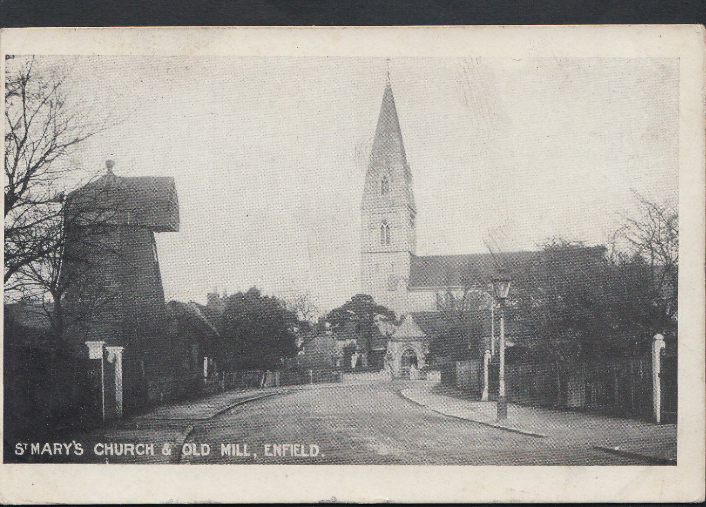 Ref: Middlesex Postcard - St Mary's Church and Old Mill, Enfield MB1448