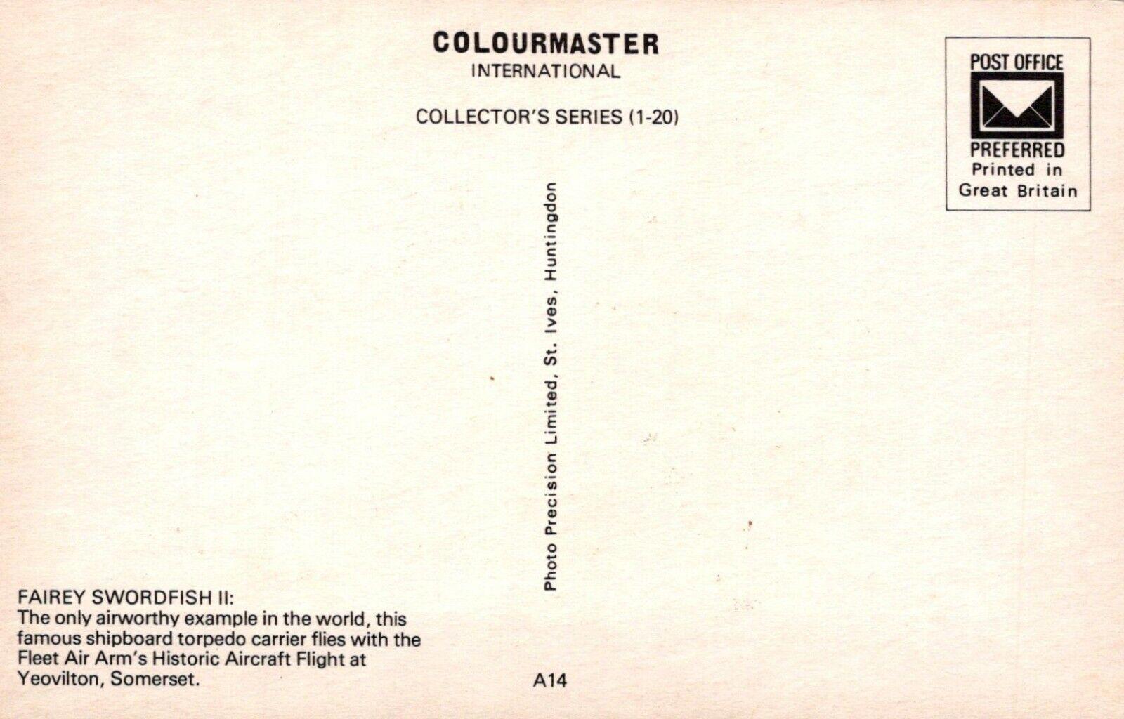 Postcard Description: Military Aviation Postcard - Fairey Swordfish II Aeroplane
