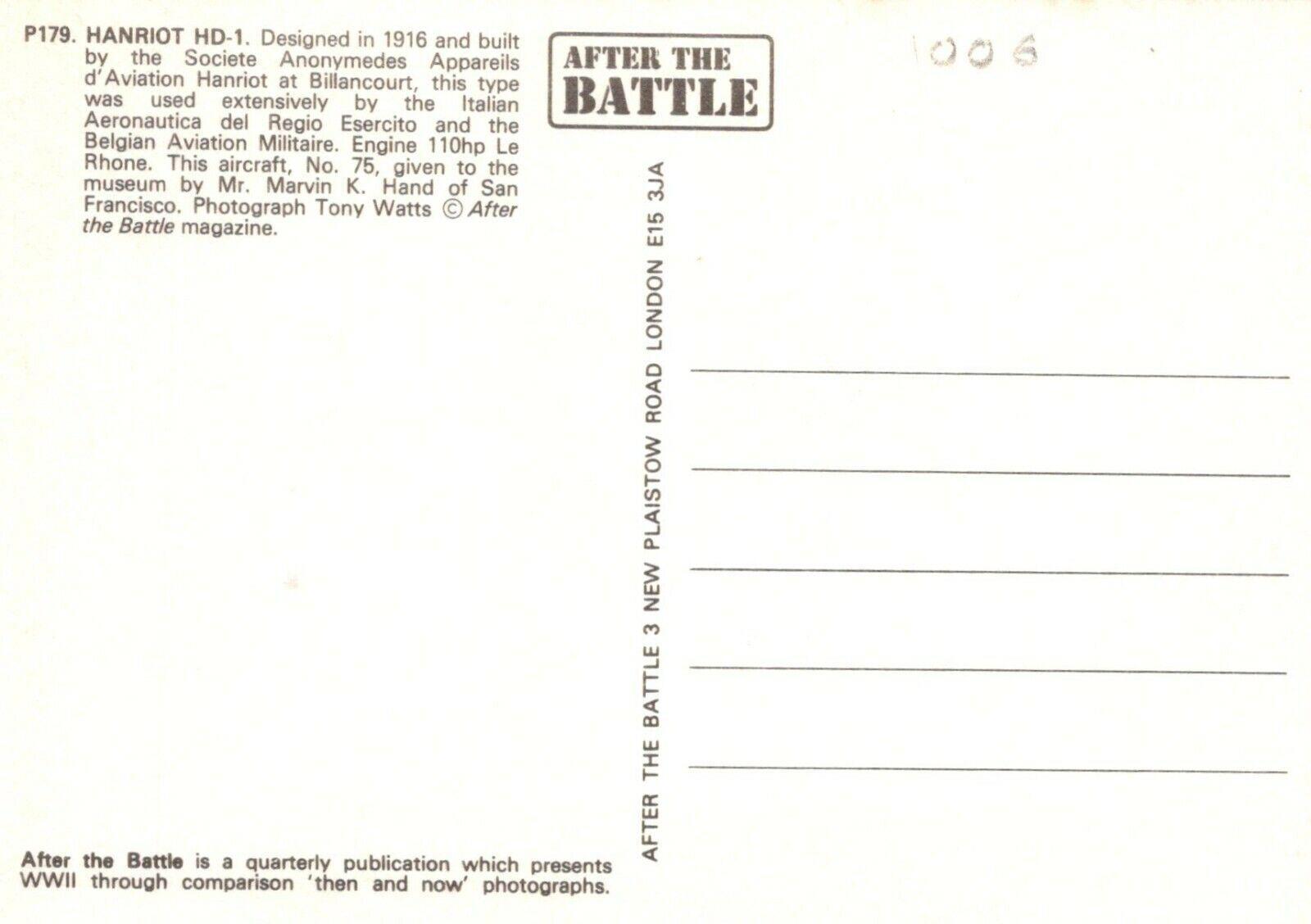 Postcard Description: Military Aviation Postcard - Hanriot HD-1 Aeroplane