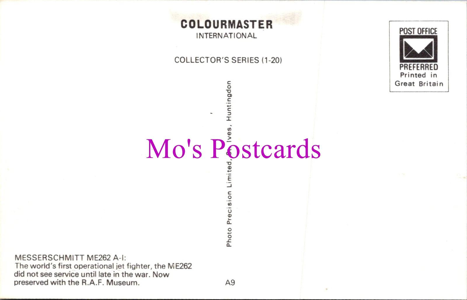 Mo's Ref: Military Aviation Postcard - Messerschmitt ME262 Jet Fighter RS38215