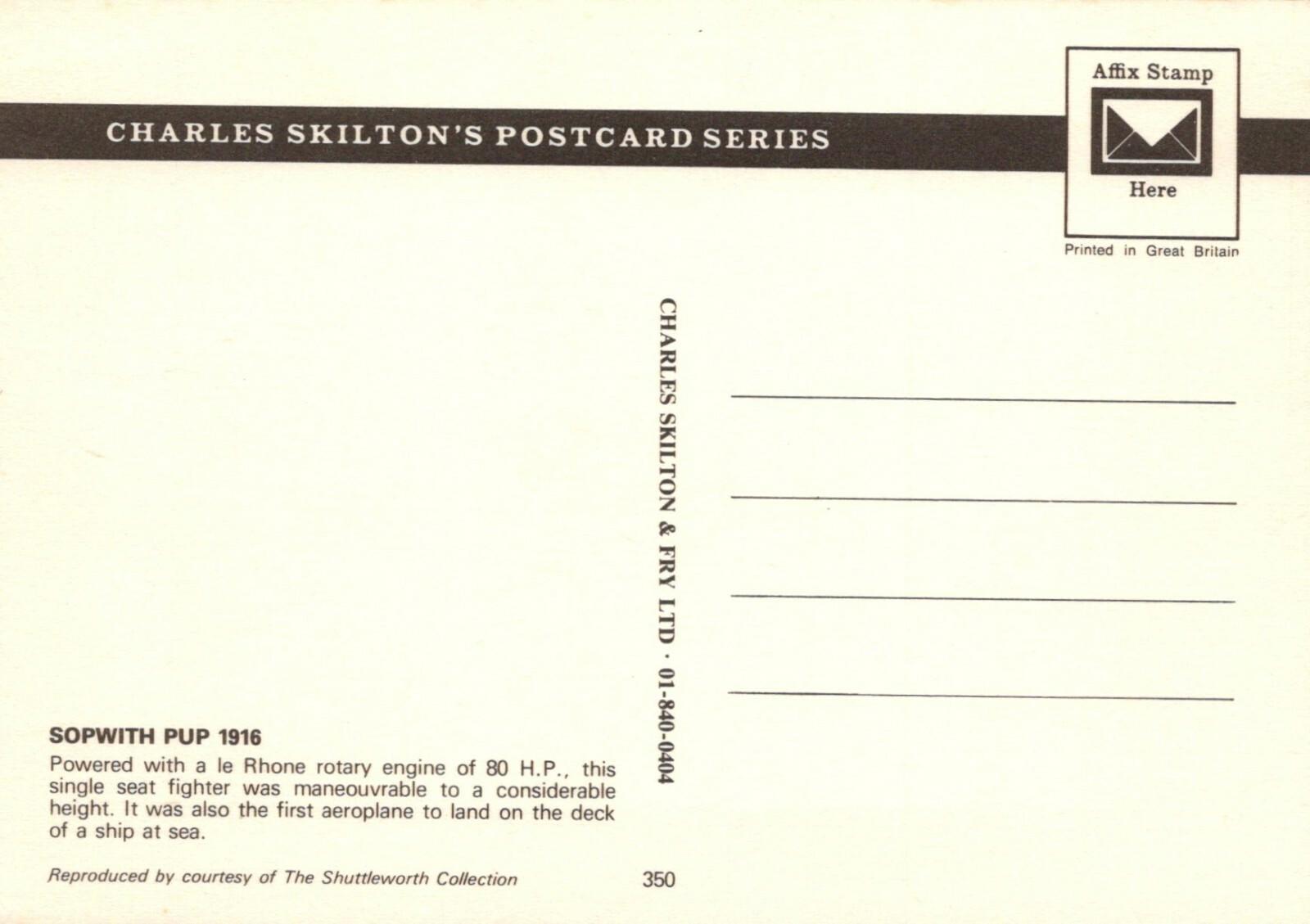 Postcard Description: Military Aviation Postcard - Sopwith Pup 1916 Fighter Aeroplane