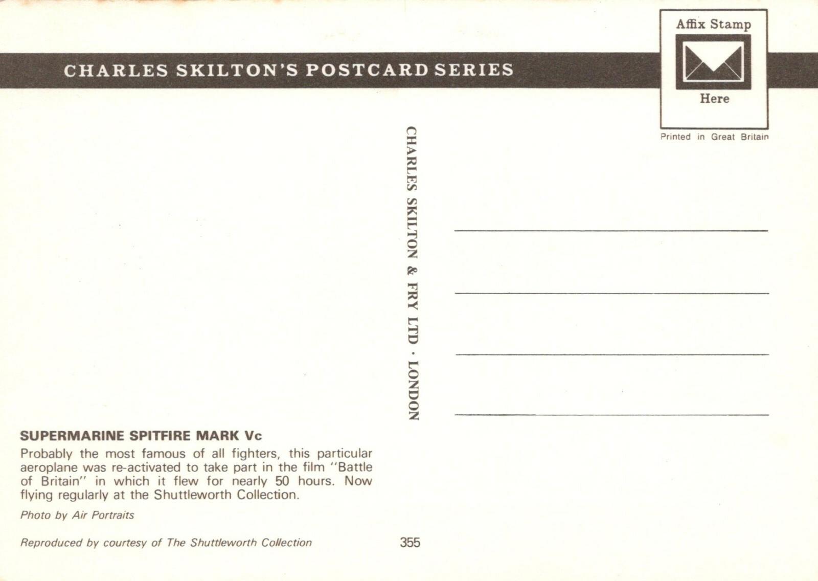 Postcard Description: Military Aviation Postcard - Supermarine Spitfire Mark Vc Aeroplane