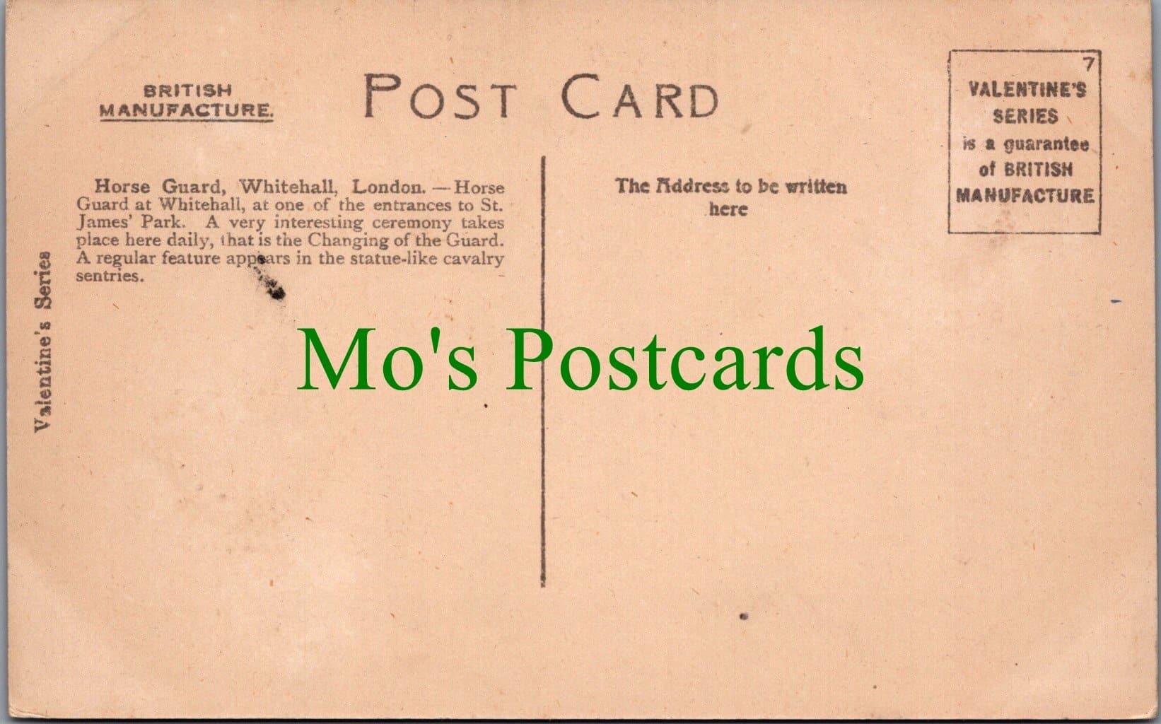 Mo's Postcards offers for sale a postcard of Horse Guards, Whitehall, London.