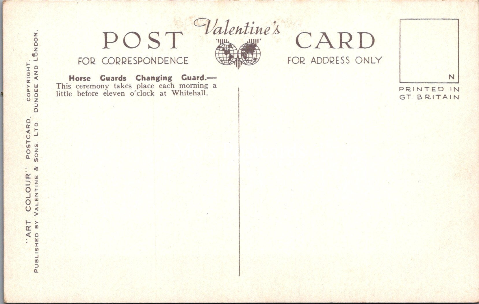 Mo's Ref:  Military Postcard - Horse Guards, London, Changing The Guard  SX133