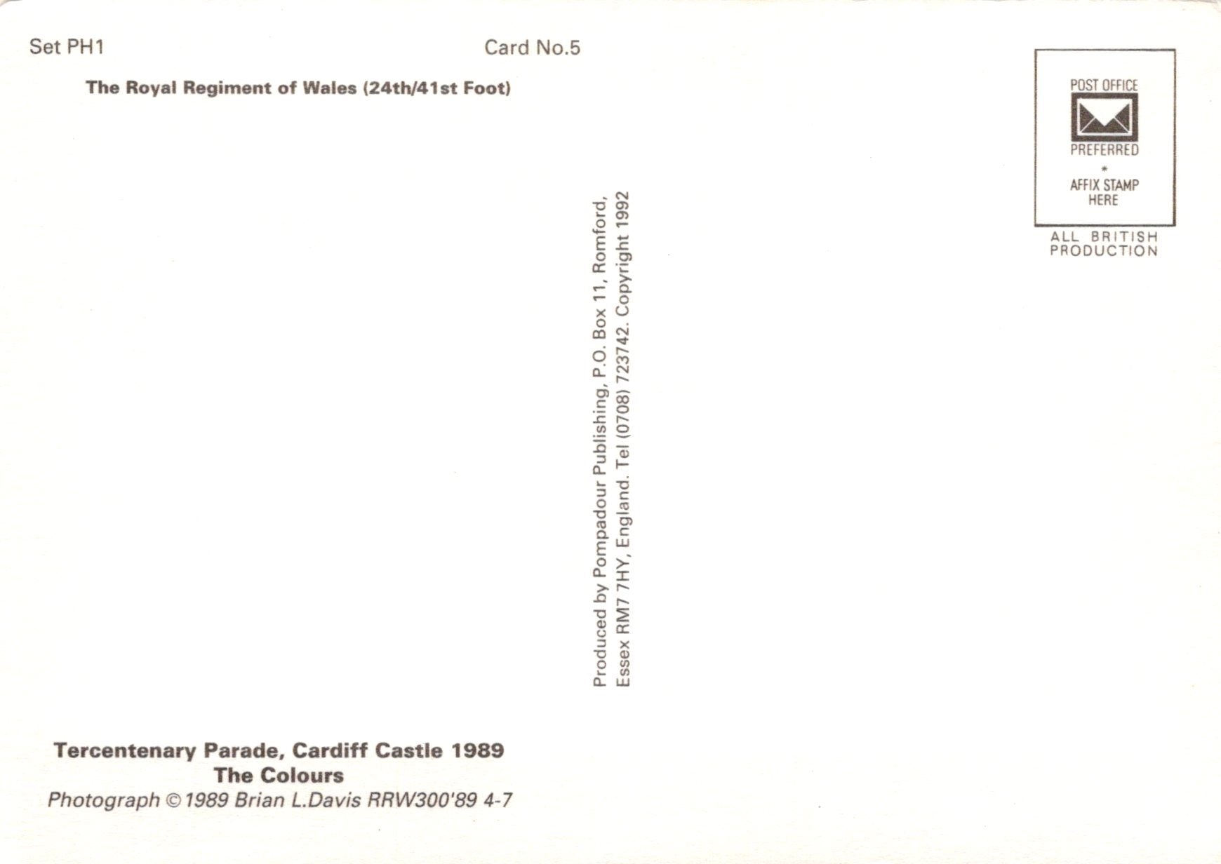 This is a Military Postcard - The Royal Regiment of Wales. Tercentenary Parade, Cardiff Castle 1989, The Colours SW19827