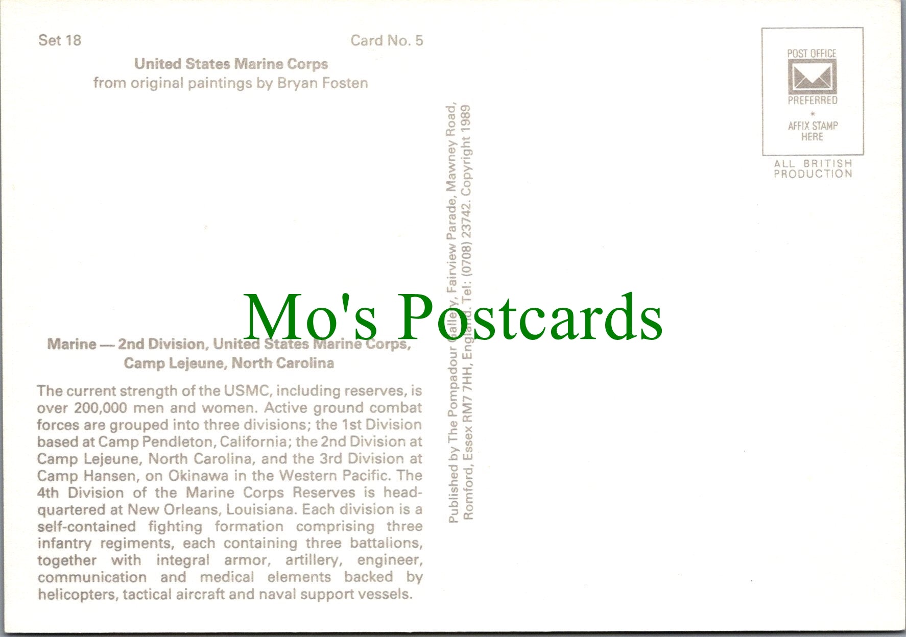 Military Postcard - United States Marine Corps. Marine - 2nd Division, United States Marine Corps, Cherry Lejeune, North Carolina. This is a fantastic continental sized postcard which would be a great addition to your postcard collection. Published by The Pompadour Gallery.