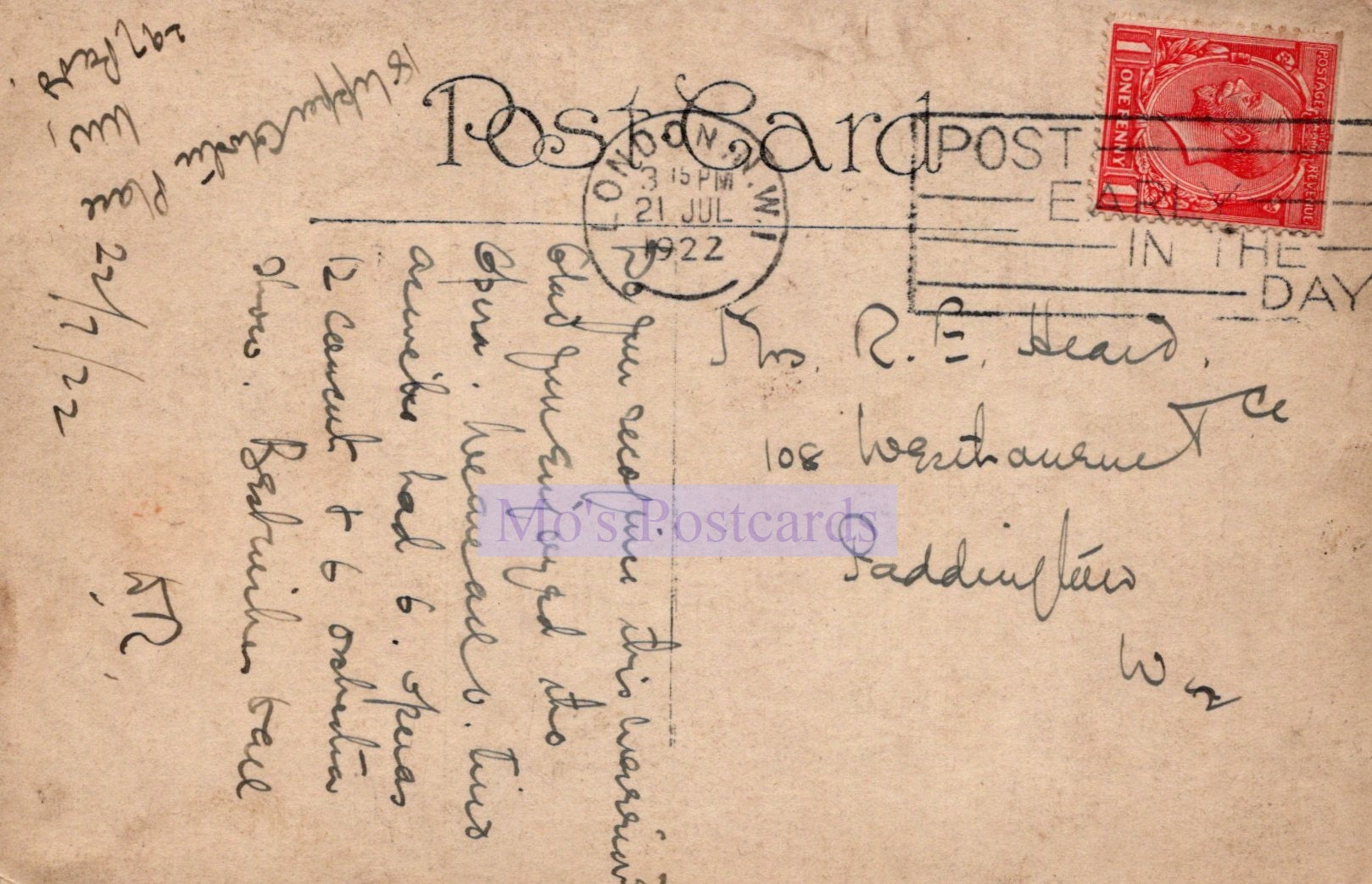 The 'Mo's Postcards' watermark does not appear on the actual postcard'.