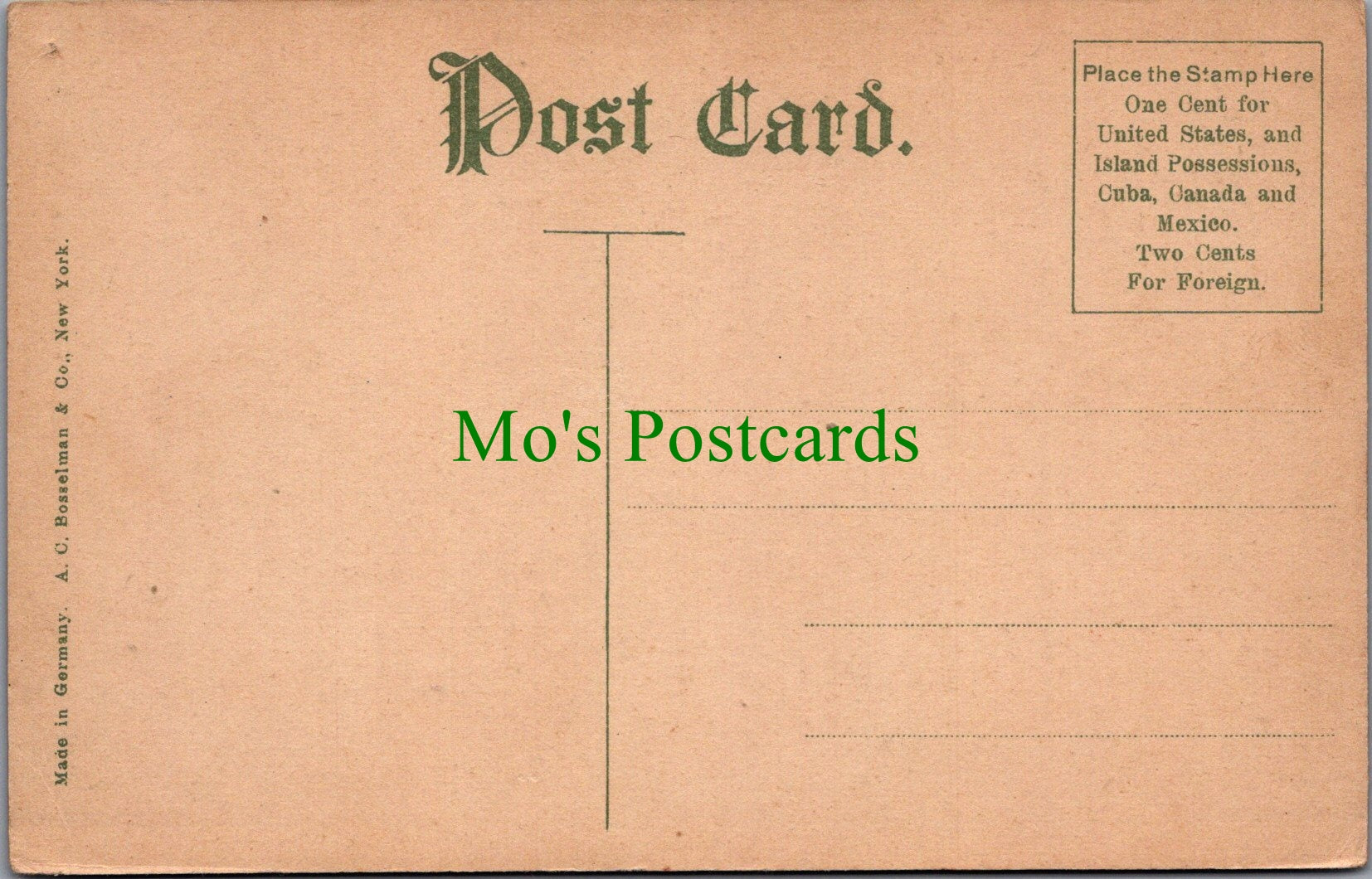 All of our postcards are posted to you inside a plastic sleeve and a board backed envelope which will be marked 'Please do not bend'. The 'Mo's Postcards' watermark does not appear on the actual postcard'.