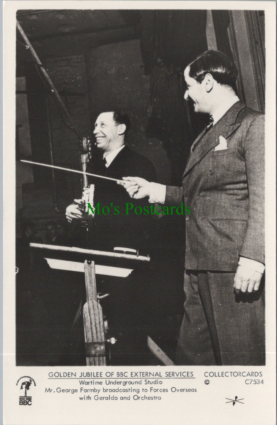 This is a Music Postcard - George Formby Broadcasting To Forces Overseas. Golden Jubilee of BBC External Services SW14846