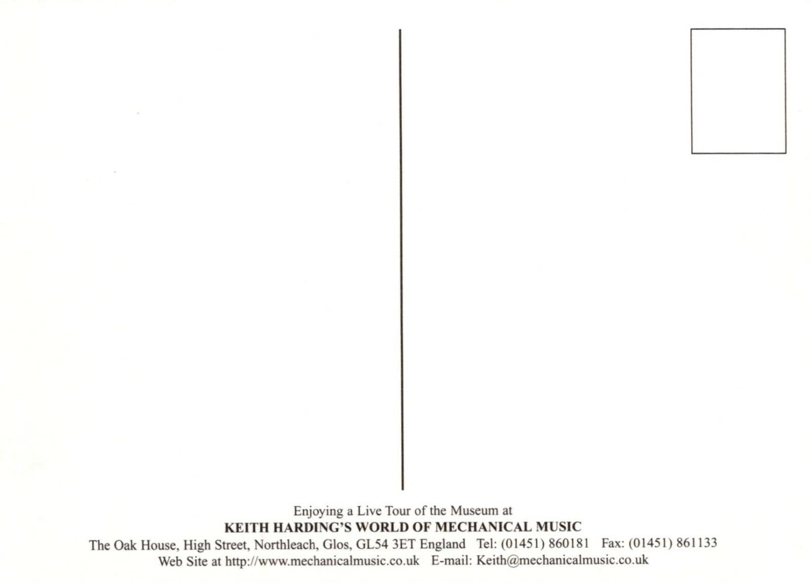 Postcard Description: Music Postcard - Keith Harding's World of Mechanical Music